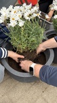 Außerdem wurden Blumenkästen und die Hochbeete im Schulgarten bepflanzt. Auch die Pflege des Außengeländes kam nicht zu kurz: Es wurde Laub geharkt, Rasen ausgesät und Vogelhäuschen angebracht.